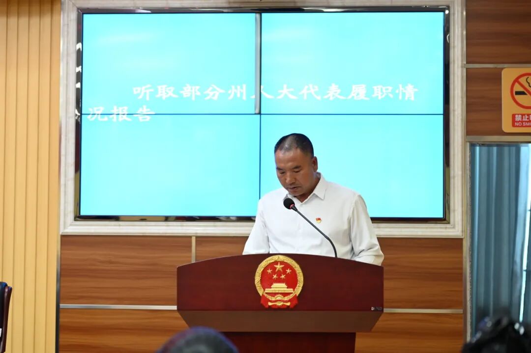 王梅代表在发言中,详细报告了如何围绕教育均衡发展、乡村教师队伍建设等议题深入调研,并在州人代会上提出相关建议的过程。“代表身份不是荣誉,而是沉甸甸的责任。每一次调研、每一次发言,都承载着群众的期望和信任。”胡明昌分享了他的履职体会,道出了代表们的共同心声。其他代表也分别从履职尽责、服务联系群众、化解基层矛盾等多个角度,报告了履职成效与不足。