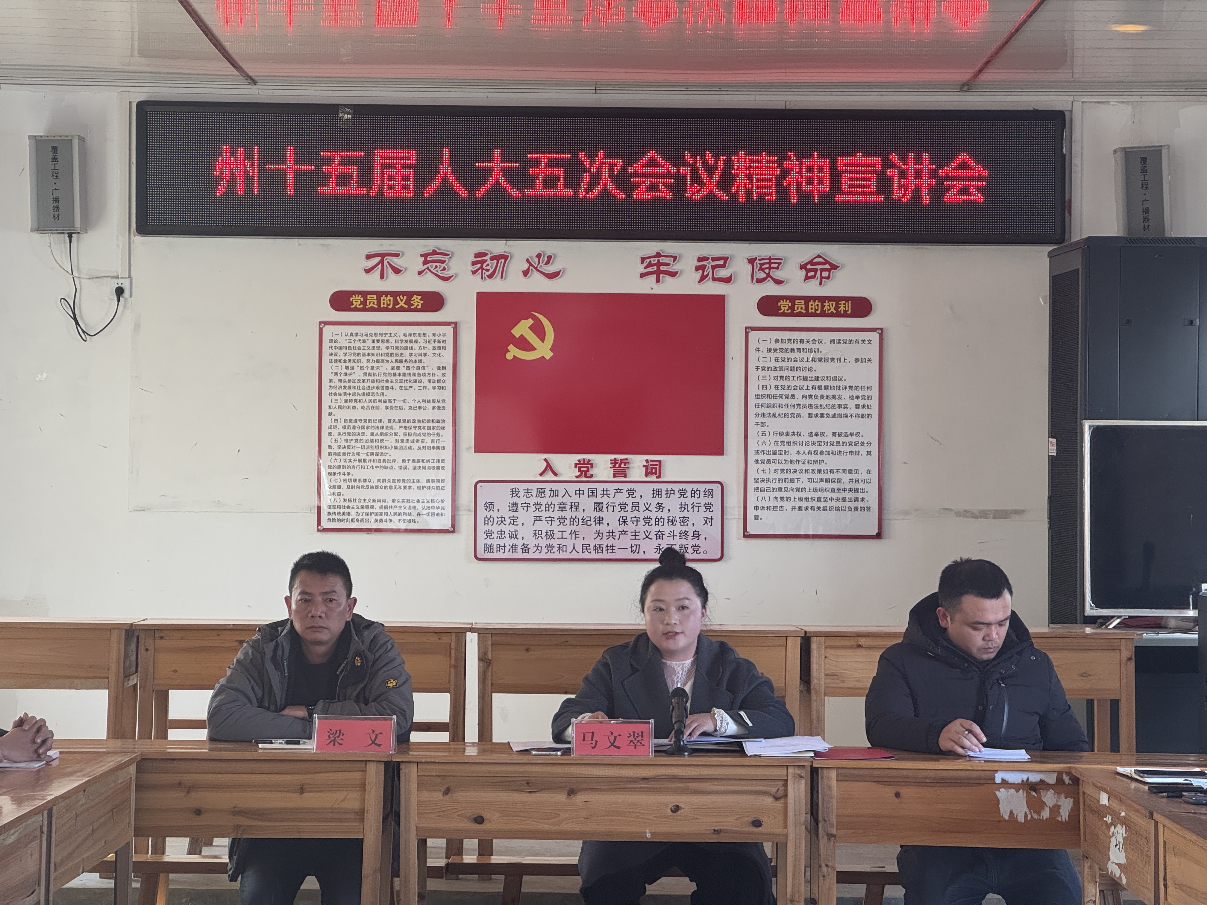 马关县都龙镇坝保村党总支书记、主任马文翠,是省、州、县、镇四级人大代表,近日,回到家乡的马文翠积极组织都龙镇坝保村委会的党员、人大代表和村“两委”干部,向大家传达学习省、州人代会精神。